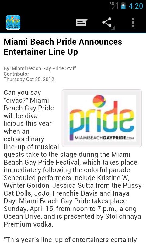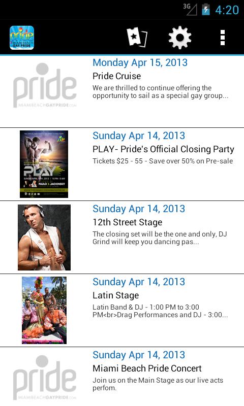 Welcome to the official mobile app for Miami Beach Gay Pride! This app is a comprehensive guide to our annual Pride celebration, including events, photos and some cool interactive features.