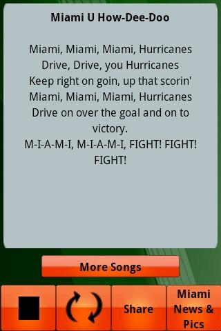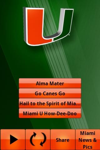 Experience the explosive power of Miami Gameday! Play the top Hurricane fight songs whenever & as LOUD as you want; at the pregame party, during the game, after a score, celebrate a victory, or taunt a rival. Includes MUSIC & LYRICS for “Miami U How Dee Doo”, “Hail to the Spirit of Miami U”, “Alma Mater", "Go Canes Go” & top Miami logos. All content is officially licensed. Easy sharing link to friends on Facebook. It’s like bringing the band & cheerleaders with you! GO CANES!