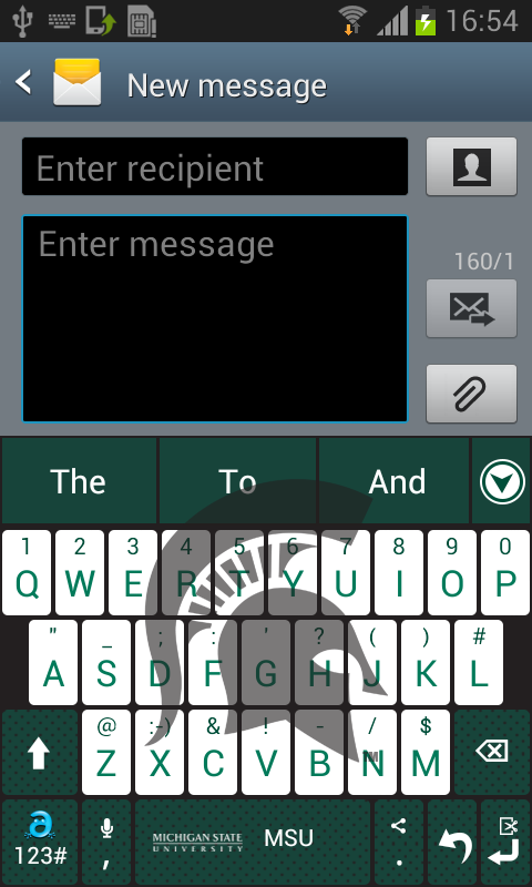 *Graphically rich Green and White theme keyboard with the MSU logo