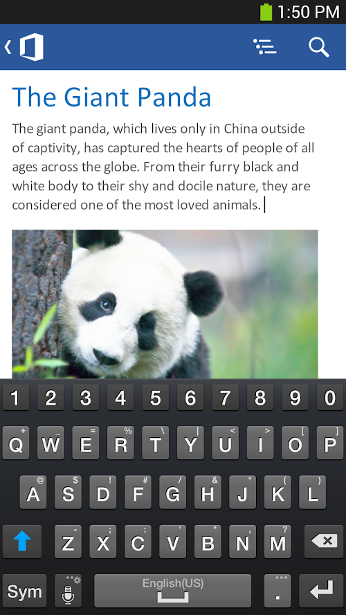 • Documents Remain Intact - Formatting and content remain intact when you edit Word, Excel, or PowerPoint documents on your phone.