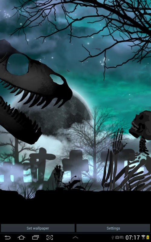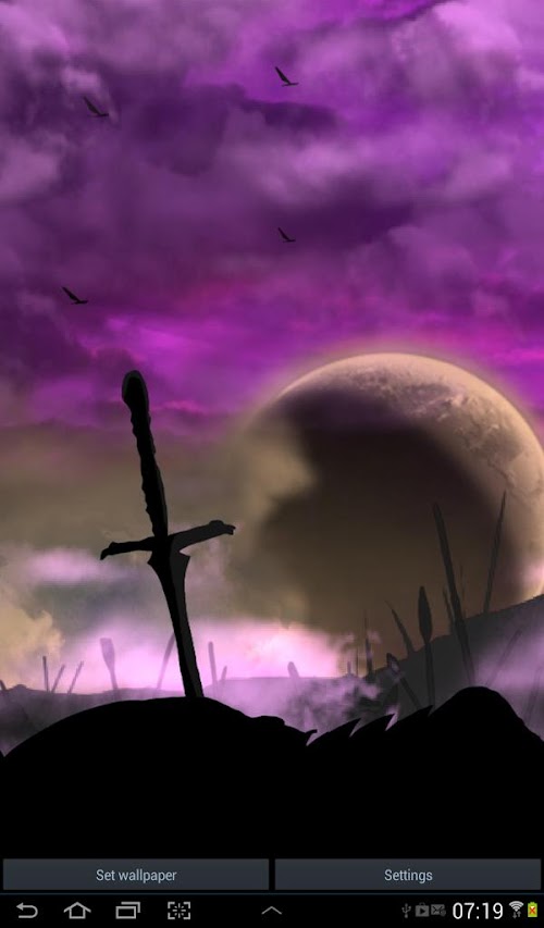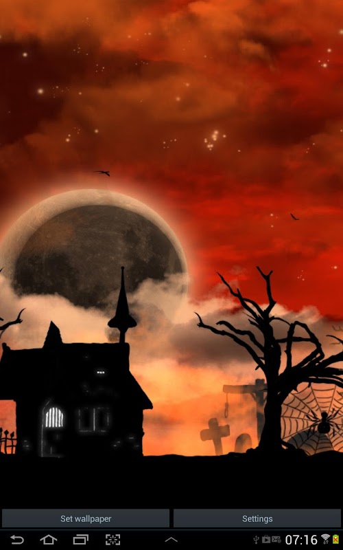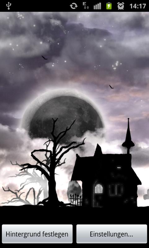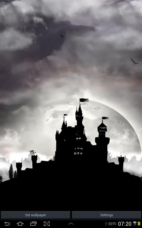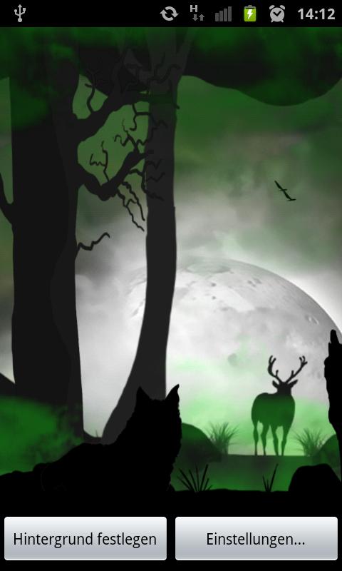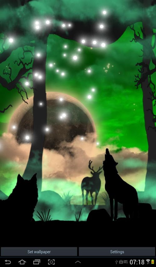 The App “Midnight Scene” is for all Lovers of the night and gothic. The full version of that animated live wallpaper comes with a cottage of a witch and a dark castle. You can also watch how the wolf pack hunts a deer or the scene of a lost battle. It is also for the lovers of Halloween with crazy looking orange pumpkins and skeletons. Let particles appear while touching your screen and they will glow like lightning bucks.