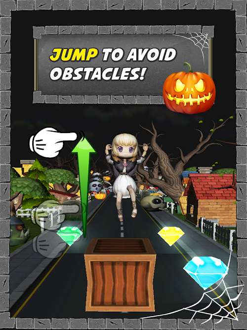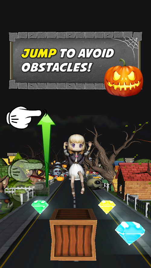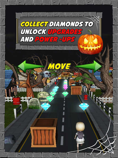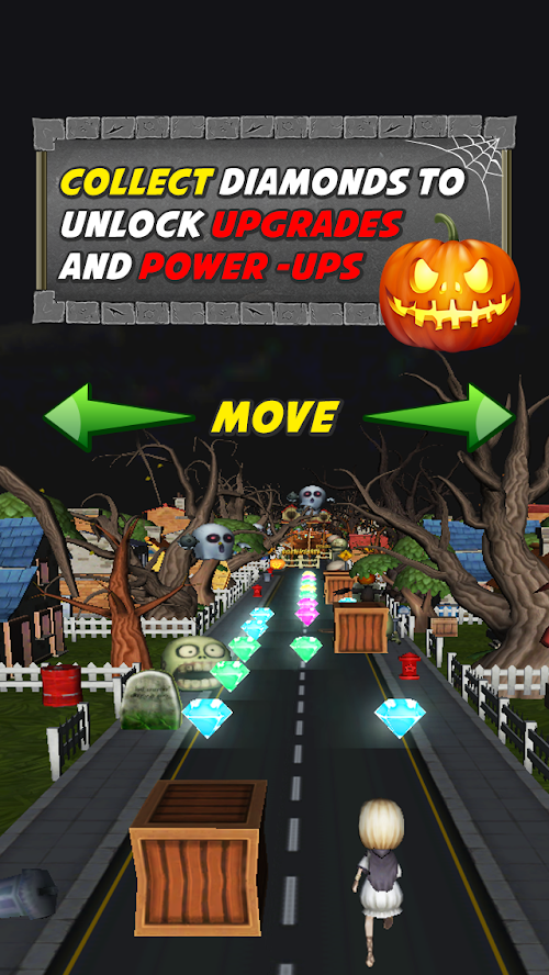 Can you reach the pumpkins in time? Collect gems and diamonds on the way!