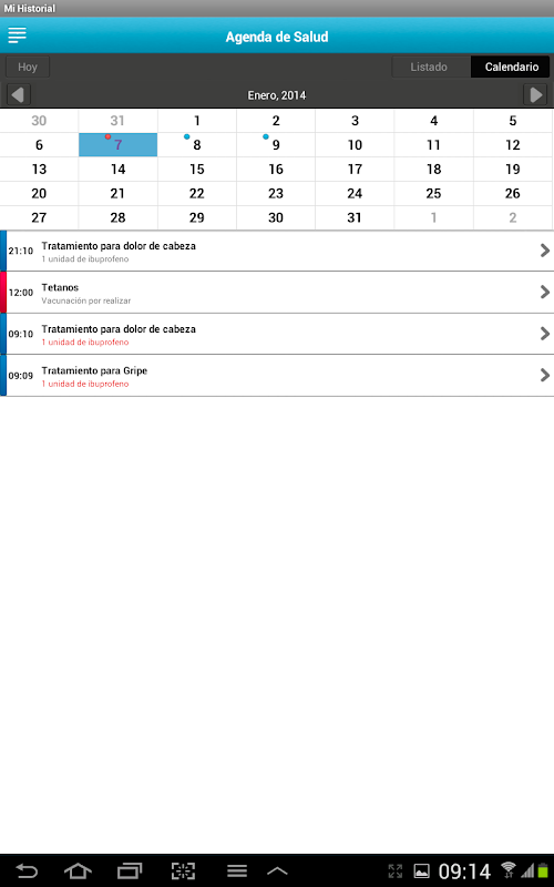 Adding treatment miHistorial app will remind each of the shots, scheduling the dailies and the number of days. Application automatically added to the calendar of your phone jacks each treatment.