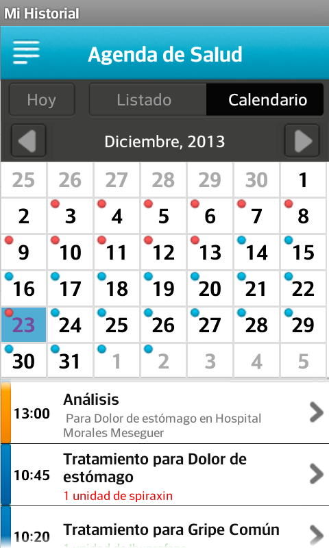 La agenda de salud le avisará cada día de los eventos previstos para el día de hoy suyos y de los perfiles compartidos o dependientes.