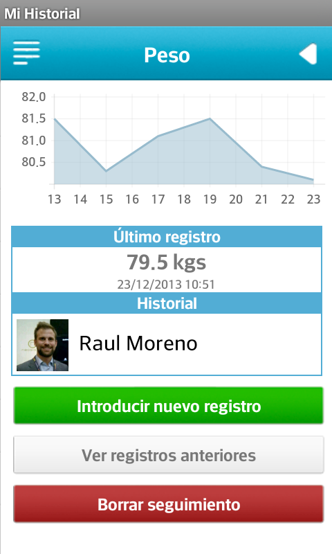 Con el apartado de Seguimientos puede llevar un seguimiento de su peso, presión arterial, glucosa, altura, etc.