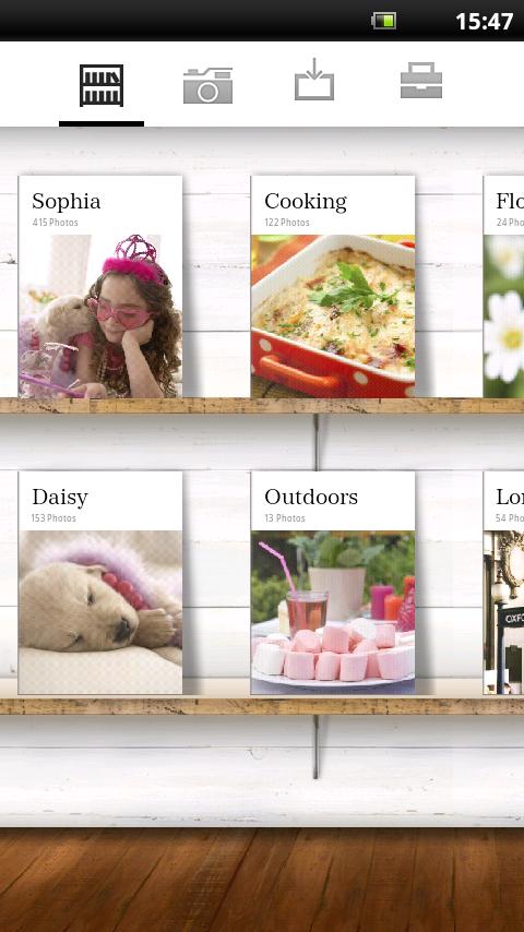 -Create albums without editing your images Import the pictures from your smartphone or your Facebook albums, or take new pictures from within million moments to create an album automatically. Imported pictures are automatically sorted by date, with one-to-five pictures displayed per page.