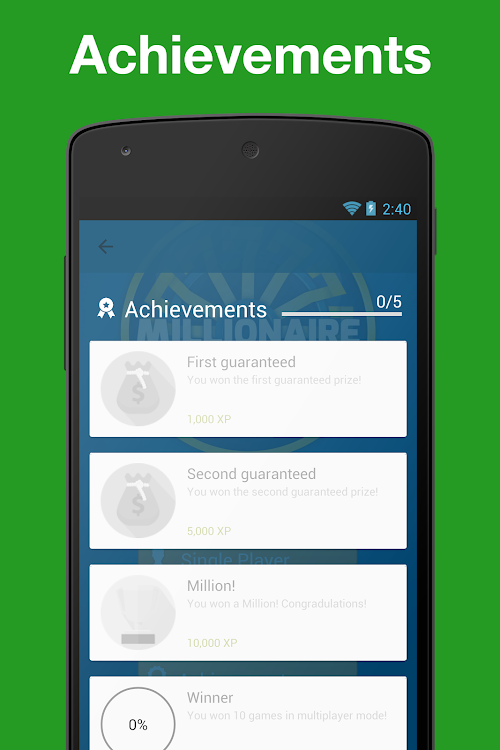 This version of Millionaire Android Game comes with one universal variant which will work on all the Android devices.