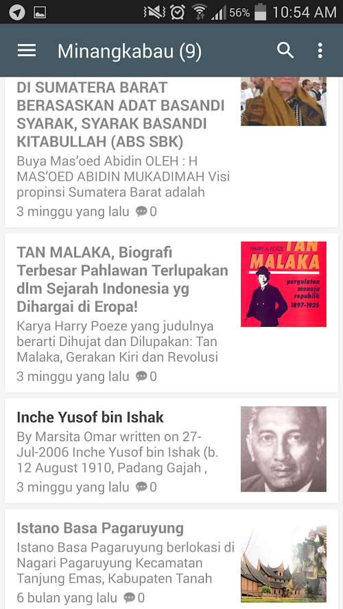 Aplikasi ini merupakan aplikasi yang menyajikan artikel / berita seputar Minangkabau dan Sumatera Barat, disamping itu juga terdapat berita nasional, olahraga, dan dunia teknologi