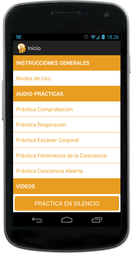 Al practicar con la App, estarás desarrollando un estado de conciencia atento, de concentración, relajación y claridad mental al mismo tiempo, desde el cual podrás mantener la atención focalizada en un objeto elegido. Este objeto puede ser la respiración, las sensaciones del cuerpo, los sonidos, pensamientos, sentimientos o las emociones. También puedes mantenerte en un estado de conciencia abierto, sin objeto de elección.