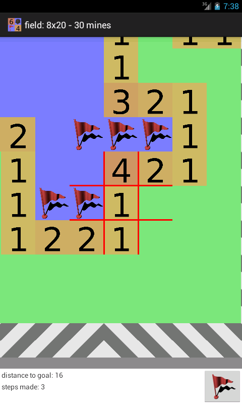 Using the flag button you can activate/deactivate the flags to signal the tiles you suspect contain mines by taping on them.