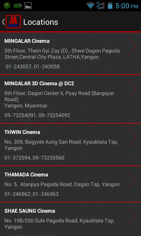 Mingalar Application is the movie listing application for Mingalar Cinemas, including Mingalar, Shae Saung, Thwin, Nay Pyi Daw, etc. It contains the current movies showing at the cinemas, the upcoming movies and the theater information. Download this application for free and please remark if you have any inconvenient error or suggestion for us. Please rate our application to share your likes on our Mingalar Cinemas application.