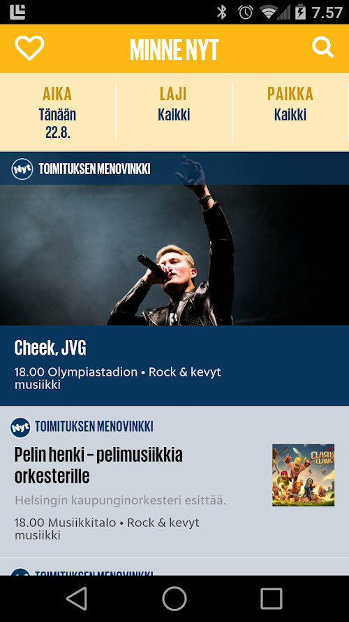 Sovellus sisältää myös Finnkinon kaikkien pääkaupunkiseudun elokuvanäytösten tiedot sekä toimituksen suosittelemat menot.Where now offers Hesarin expenditure data in a convenient and rapid form directly from the Android -laitteessasi.