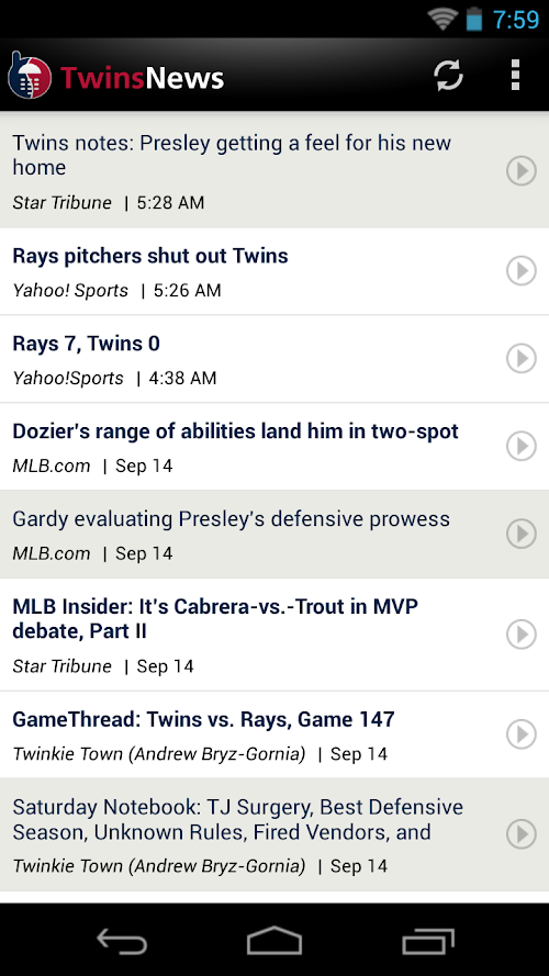 Hey Minnesota Twins fans! Stay in the know on your favorite football team with Minnesota Baseball News - the premier Minnesota Twins news aggregator for Android. Features include: