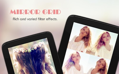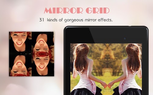 With Mirror Grid, you can create left-right, up-down, reflection, repeating as well as reflection style enabled photos with this photo editor app. You can also create photo grids and photo collages, Mirror Grid provides you a great collage maker tool, which will let you to create beautiful photo collages and photo grids. Just select photos and Mirror Grid will give you hundreds of different collages ,grid effects and filters.