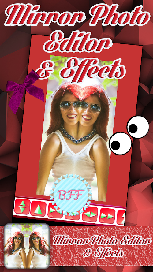Give a warm welcome to the new mirror photo editor and collage where crazy photo mirror dreams become a reality. Apply photo water reflection effect to your funny pictures and make a glamorous “mirror collage”. Have fun while experimenting with lots of insta photofunia effects that this kawaii photo editor has up its sleeve. No matter whether you opt for a blurred photo, vintage camera or a retro collage, all fancy girls are going to find your cool photo montages irresistible. Spend hours playing with numerous glitter photo frames to wrap your candy camera selfies with. Make the most of this best mirror picture app - squeeze as many cute photo booth girl stickers and emoticons as you deem appropriate and make your selfie camera pics shine with a new glow. Give Mirror Photo Editor & Effects a chance and follow the trends of creative picture editing.