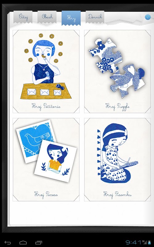 - štyri hry - pexeso, puzzle, počítanie a test, ktoré sa odomknú po prečítaní určitej pasáže z knihy