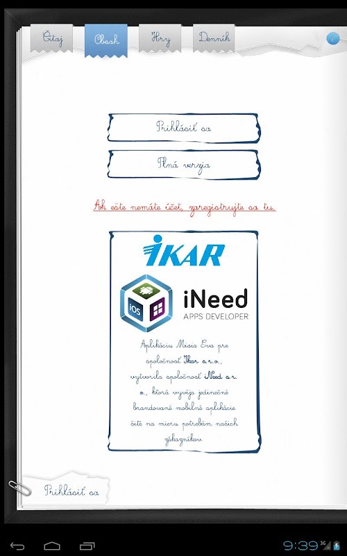 Kľúčové slová: rozpravky, deti, pre deti, hry, hra, kniha, knihy, ebook, ekniha, pexeso, puzzleUnique application to paper books Misia Eva, secret from Tamara Heribanová. For schoolchildren, who can become part of a secret plan and experience their own mission. The application includes: