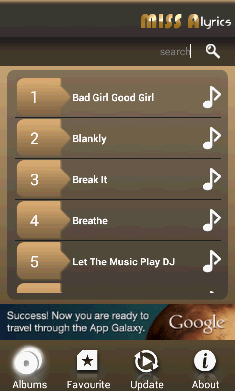 This version of Miss A Lyrics Android App comes with one universal variant which will work on all the Android devices.