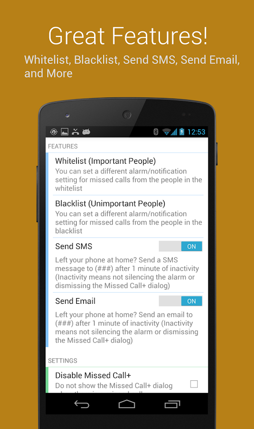 • Support whitelist (i.e. contacts you want to sound alarm even in silent mode) and blacklist (i.e. contacts you don't want to sound alarm)