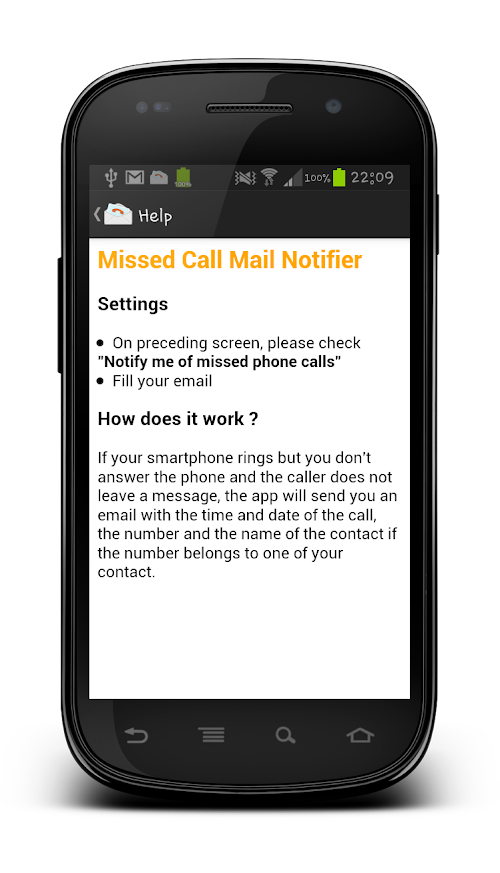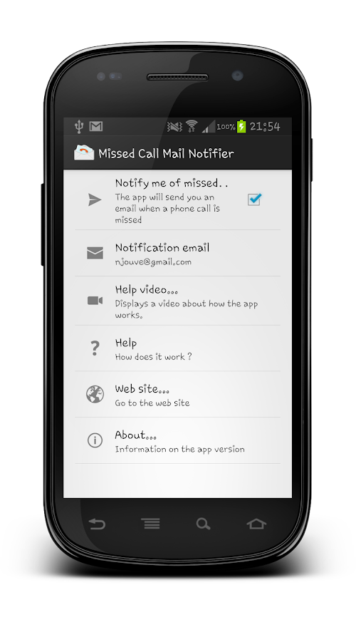 This application is here to fill this gap and will notify you of those missed phone calls. All you need to do is fill your email.