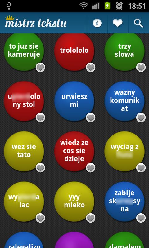 Master application is a collection of the most popular text, funny Polish texts from the Internet, the movie sounds. Just at the right moment, press the appropriate button to entertain your entire company!