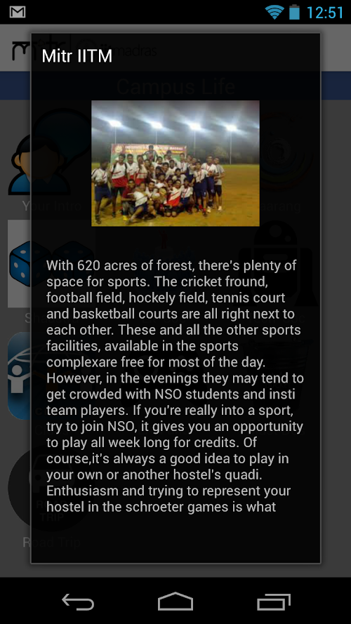 9.Campus Life: this section describes about the life at IIT Madras