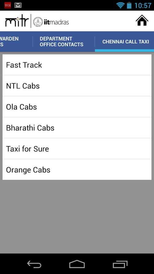 3.Contacts: this section includes the contacts of MITR team, Hostel Wardens, and Chennai Call Taxi Contact details