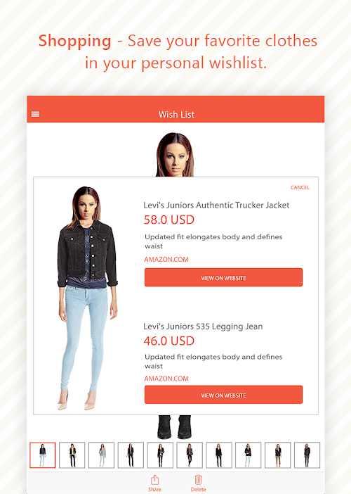 With the Mix & Style fashion app you can virtually try on the latest fashion trends. All that you have to do is take a selfie and then try on hundreds of clothing items, save your favorites in the wishlist or share them with your friends.