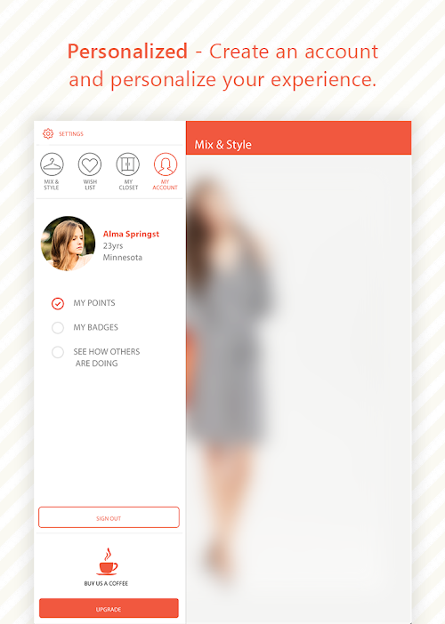 Mix & Style has two awesome interfaces, both the male and for the female fashion savvy users of the app. All that you have to do is set your gender and personalize your style experience.