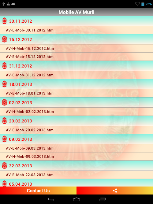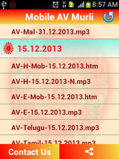 Note: MP3 murli sizes usually vary from 40-100MB and duration from 1-3 hrs. Hence app will provide only online listening. But still you can download these audios using your browser option and play separately