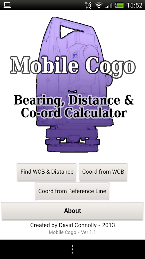 Keywords: WCB, bearing and distance, 3D Coordinates, Offsets, Grid Convert, Cogo, co-ord, Easting, Northing, Global, Local Grid, National, Civil Engineering, Construction Site,Setting Out, Calculator, Calc, Total Station, EDM, Geodesic coordinates