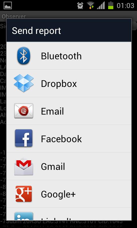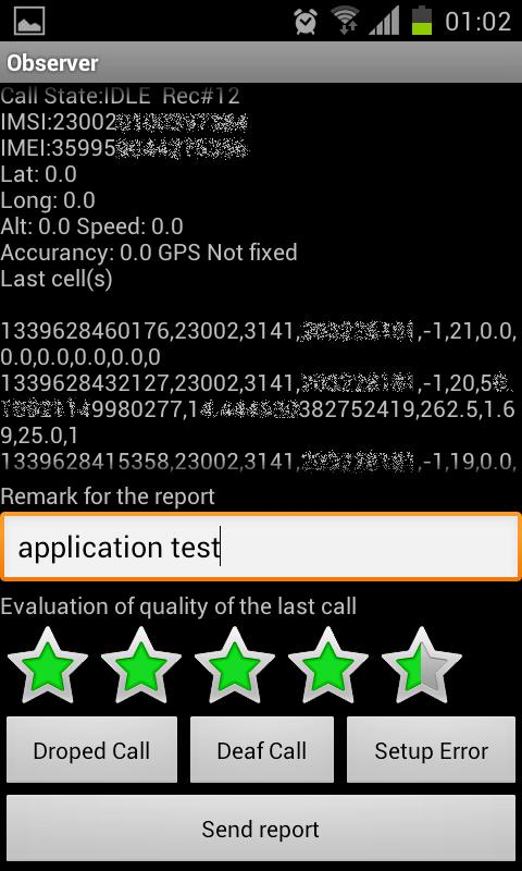 Application Mobile network Observer is used to capture technical details of the actual mobile network environment. You can report captured details via email or other channels to you or your network operator support. You can view measurements in the map if you use GPS.