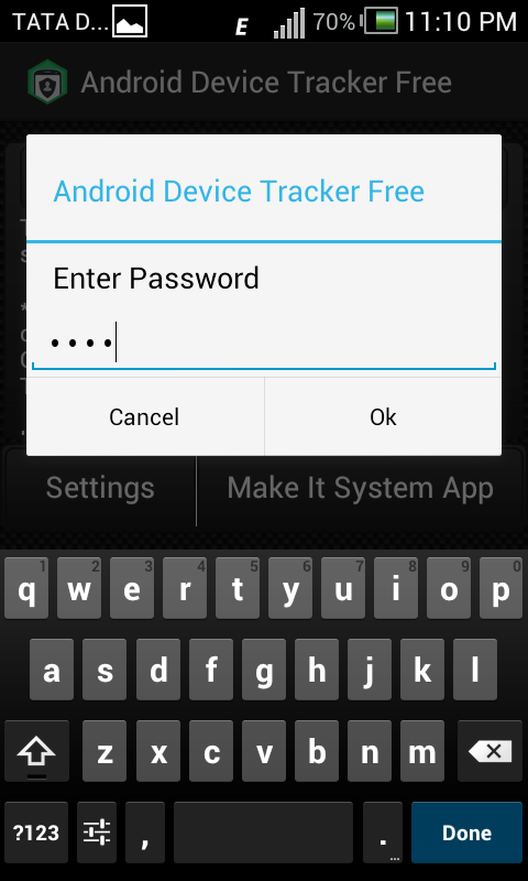 * When the app is installed for the first time on your device, please click on Settings button in the app. It will ask you to create a password. Then, it will launch the settings screen of the app.