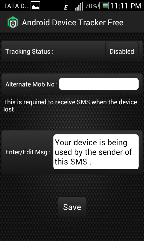 * Enter any MOBILE NUMBER (Most preferably ANY OTHER MOBILE NUMBER OF YOURs or YOUR FAMILY MEMBERs and NOT WHAT IS CURRENTLY IN USE BY THIS DEVICE). This is to get the message when the device is lost and the thief replaces your SIM with any other SIM.