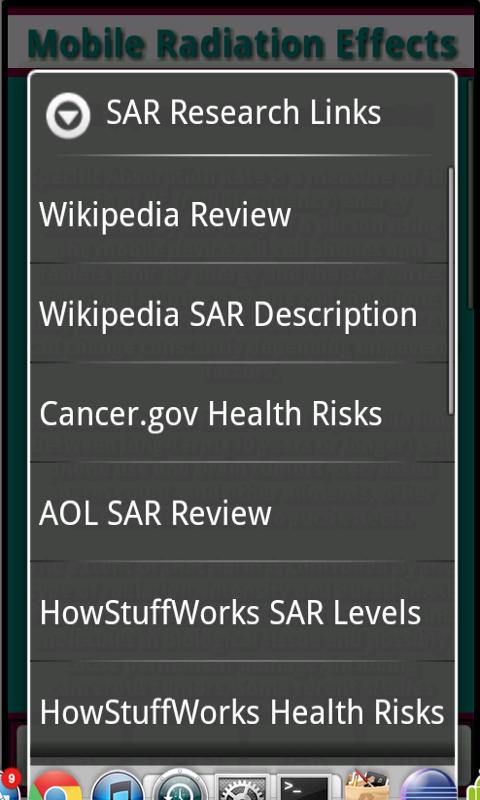 This application lists various research articles and links into this subject and also lists some of the modern mobile devices that are extremely harmful for us interms of radiation.