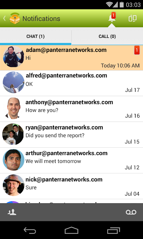 • Complete business-level secure Instant Message with co-workers to their mobile devices or desktops