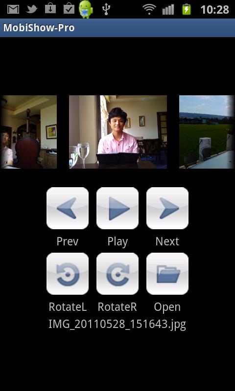 You can use MobiShow to project photos stored on your phone to big screen. The photos will be prepared for playback on big screens rather than for the tiny screens of your phone.