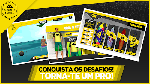 Escolhe o teu surfista, escolhe a tua prancha de surf, escolhe a tua praia. Tens 28 desafios à frente para ver se és mesmo bom ou se és só conversa. Vai a Carcavelos experimentar as 16 manobras mais prós do Surf. Não chega? Aguenta, vamos lançar mais praias! Mergulha no Guincho em Cascais; rema pelos Areais de Santa Bárbara em S. Miguel; e atreve-te a enfrentar os temíveis Supertubos em Peniche! Surf é com o Moche Surf Series!