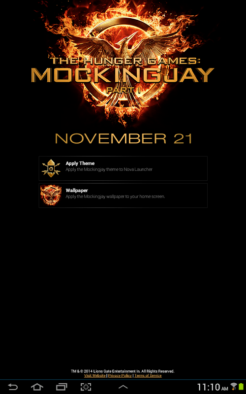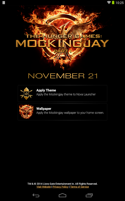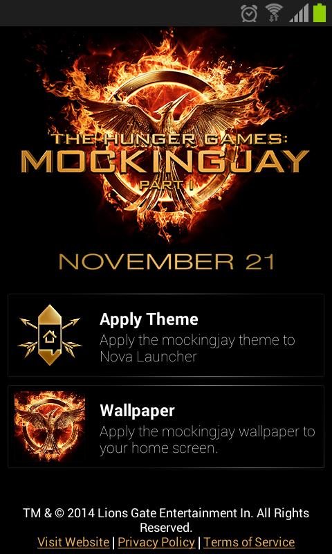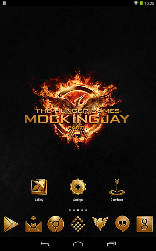 The Mockingjay Lives! Customize your favorite app icons with this gilded pack inspired by the release of THE HUNGER GAMES: MOCKINGJAY PART 1… Includes a themed wallpaper and icons. Must be deployed via ‘Nova Launcher’.