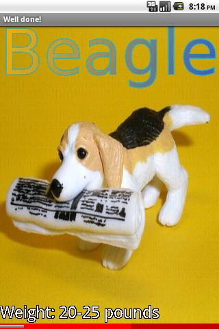 Afghan, Beagle, Chihuahua, Dalmatian, Pekinese, Terrier and many more! This educational game uses 71 photos of charming toy puppies to teach you to recognize 24 breeds of dog. Enjoy the photos and original music, listen to the names, and choose the correct images. Read the facts with each photo for lots of interesting information, such as weight, temperament, why the breed was developed, and average life span.