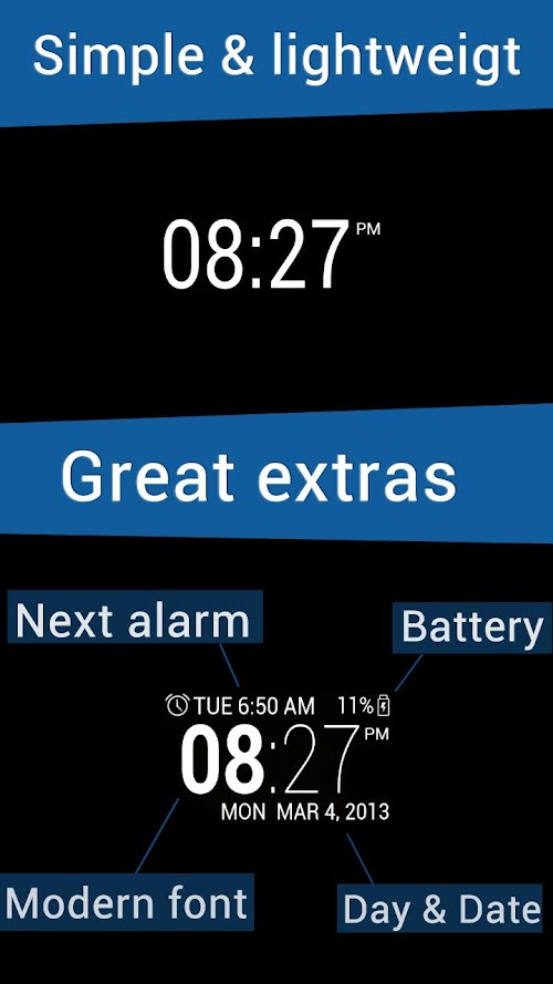 To use these feautures, open the Modern Digital Clock app that comes with the package.