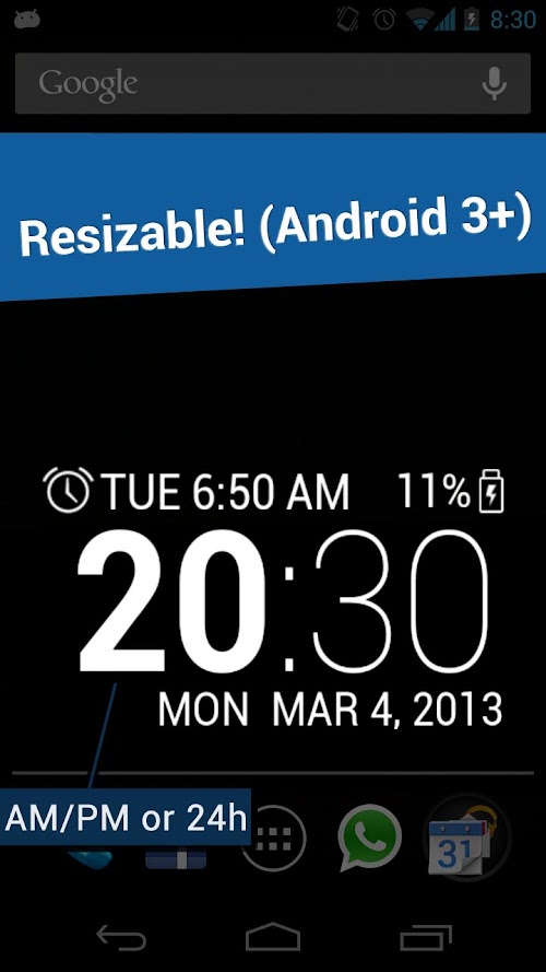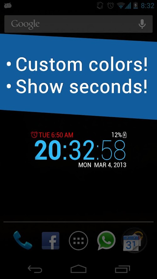 • Android 3 or lower: The Small version is for use without "show seconds", Large is for use with seconds.