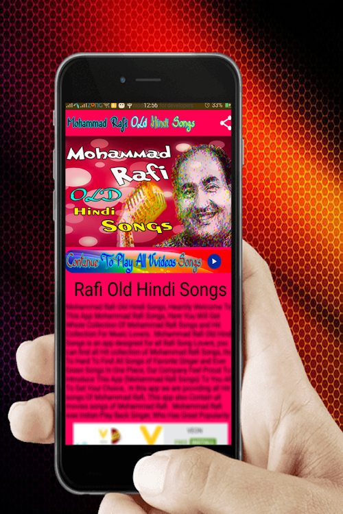 Mohammad Rafi Old Hindi Songs is an app designed for all Rafi Song Lovers, you can find all Hit collection of Mohammad Rafi Old Hindi Songs,Its To Hard To Find All Songs of Favorite Singer and Ever Green Songs In One Place, Our Company Feel Proud To Introduce This App (Mohammad Rafi Video Songs) To You All To Get Your Choice, In this app we are providing all Hit songs Of Mohammad Rafi, This app also Contain all movies songs of Mohammad Rafi.