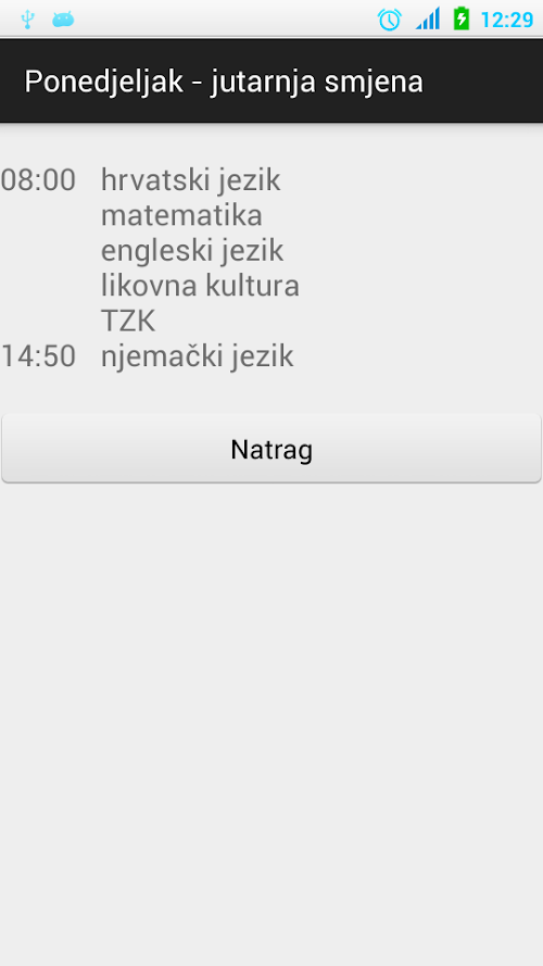 Aplikacija za unos, uređivanje te pregled rasporeda. Primarno napravljena za učenike osnovnih i srednjih škola, ali korisna svima s fiksnim tjednim rasporedima, bilo u jednoj ili dvije smjene. Omogućuje jednostavan unos vremena početka nastave te predmeta te naknado preuređivanje rasporeda za bilo koji dan ukoliko dođe do naknadnih promjena u istom.