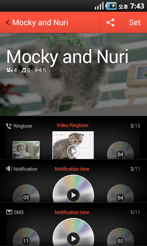 ▶Launch dodop pop and select “Package” menu, or touch the icon of downloaded package app and set video ringtone & SMS/ notification sound!