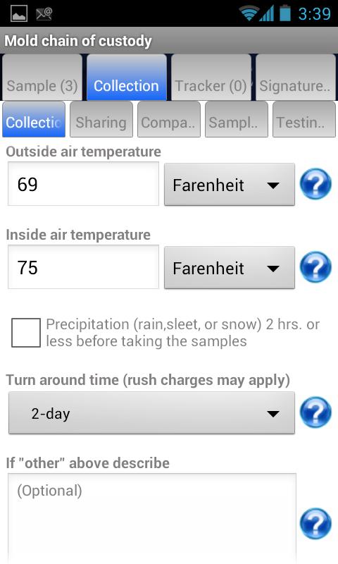 The Mold Chain of Custody is a MajorForms application which enables samples to be collected and information about the samples to be recorded on a smartphone or tablet that can be printed and sent to the laboratory which analyzes the samples. For example, the sample type (bulk, swab, wallcheck, biotape, etc.), collection location, air volume, spore trap type, swab area and surface type, etc. along with customer location and billing information can be easily and quickly be recorded in the application (in fact, the application allows the user to pull contact information from Google contacts for each customer to speed up the process). The chain of custody report can be signed on your smartphone or tablet and printed out in a pdf file or downloaded as an excel spreadsheet. The application also allows the user to scan barcodes of the samples as they are collected and record information about each sample to enable the laboratory to know what to analyze.