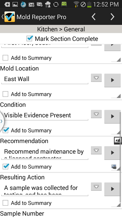 - Include as many photos for inspection items as you like from your Gallery or by using your devices camera