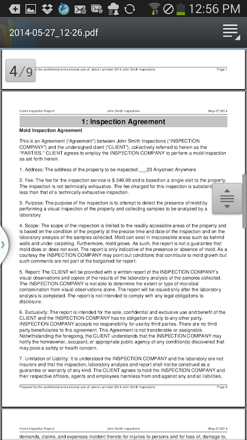Mold Reporter Pro produces a PDF report right on the spot that you can email to your client immediately or upload to a free cloud service.