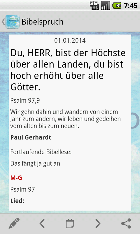 - Heute-Ansicht mit Datum, Wochentag, Bibelvers, Auslegung