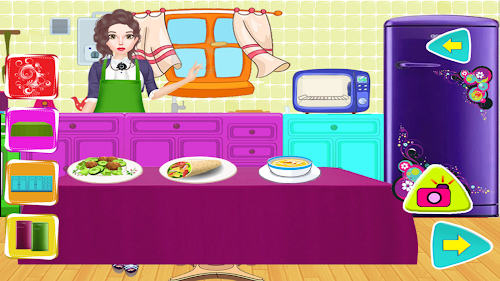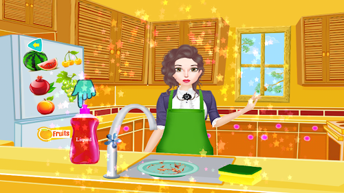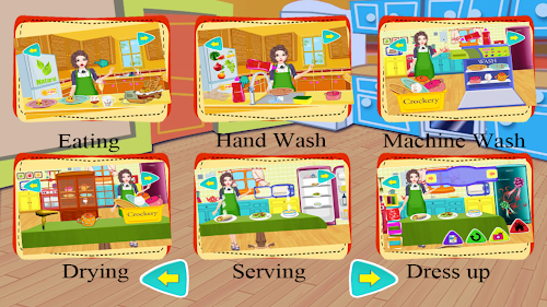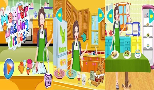 Hello. Today is my son birth anniversary and you should prepare a meal very high when he will return from school. You have to help his mother make all the preparations because it's hard to do it alone and needs your help. In this game you have to help his mother to eat, wash the dishes, putting them to dry, to have lunch and dress appropriately for her son anniversary.